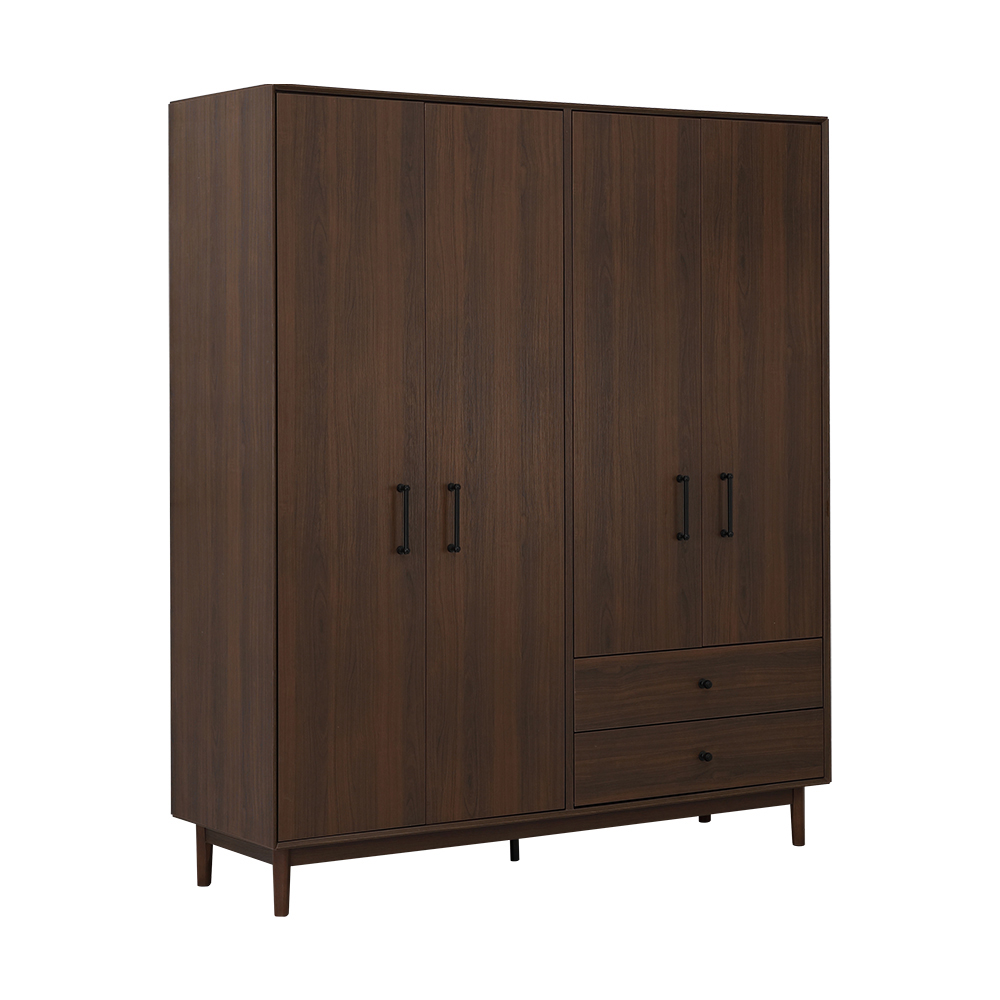 Key Feature :- ISTANBUL Wardrobe with 4 doors - Made from high-grade particle board (E1), with paper foils finished (Marcello Walnut). - Increase the strength of the structure with painted real wood legs (Walnut color). - Fitted wardrobe interior - Soft-close hinges - Colors may differ slightly from the images - Combines with other furniture in the ISTANBUL series.