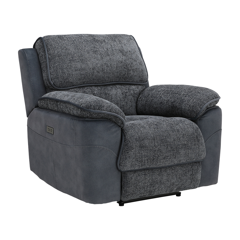 Key Feature :- ROSHELL Fabric Power Recliner 1 seater - Modern Contemporary style - Solid wood frame for a durable long life use. - High resilient polyurethane foam for great seating comfort. - Made of premium Chenille fabric at seater and backrest for comfortable feeling. Decorate with other high quality of Leather fabric keep modren look. - Recline with 1 power function. - Imported mechanic to adjust easily. - USB and Type C included that can be used together while reclining. - Maximum recline : 160 degree - The actual color is due to the light and screen setting difference, the items color may be slightly different from the pictures. - Decorate for mainly furniture item of your living room. - Indoor only.